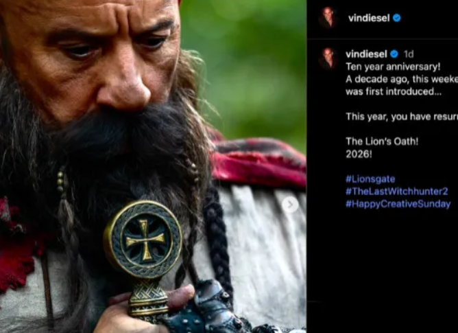 Звезда франшизы «Форсаж» Вин Дизель официально подтвердил выход продолжения своего фэнтезийного фильма «Последний охотник на ведьм». Актёр опубликовал в соцсетях фото в образе Колдера — бессмертного охотника на ведьм, которого он сыграл в оригинальной картине 2015 года, — и объявил подзаголовок сиквела: «The Lion’s Oath» («Клятва Льва»). Премьера запланирована на 2026 год.
