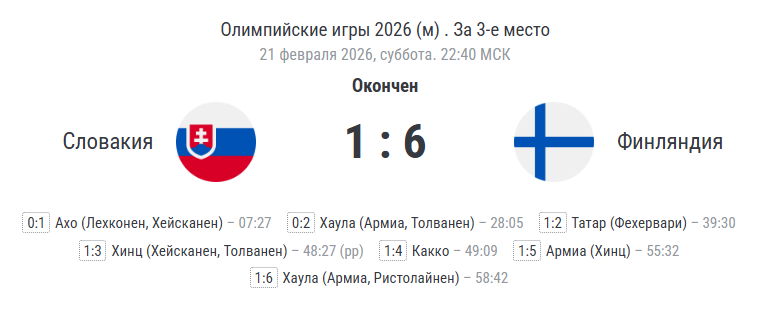 6:1 – Финляндия взяла реванш за поражение в матче открытия и забрала себе бронзовые медали олимпийского турнира. А развязка в нём наступит меньше чем через сутки.
