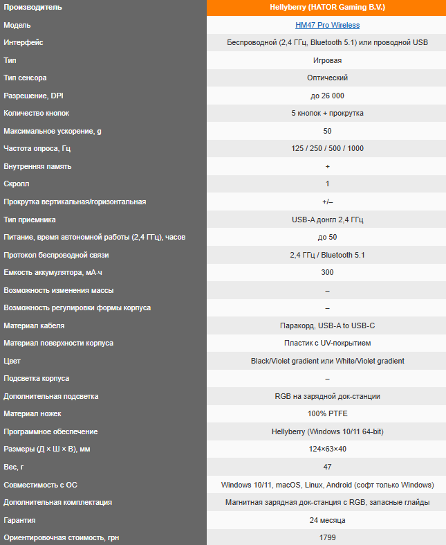 Производителем значится HATOR Gaming B.V., торговая марка зарегистрирована в ЕС. Ирония слова «флагман» в случае Hellyberry заключается в том, что весь бренд находится в бюджетном сегменте, но HM47 Pro — это именно старшая из двух моделей, и в рамках линейки она действительно «флагман».