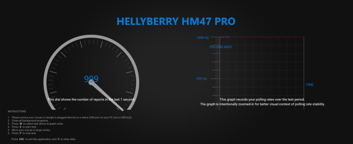 Частота опроса стабильно установлена на значении ровно 1000 Гц в проводном и 2,4 ГГц режимах. В Bluetooth фактическое значение ограничено протоколом и составляет 125 Гц, что нормально для работы с ноутбуком или планшетом, но для игр этот режим применять не стоит. Загрузка CPU при 1000 Гц в тестовой системе держится на уровне 1–2%, то есть в рамках погрешности измерения и в любом случае абсолютно не критична в отличие от устройств с 8000 Гц.