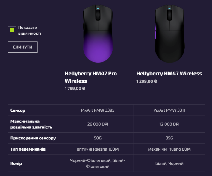 Третий и финальный акт дебюта суббренда Hellyberry в наших обзорах. Мы уже видели клавиатуру HK75 Wireless и гарнитуру HH30 Pro Wireless, а теперь дошла очередь и до мышей. Под маркой Hellyberry предлагается сразу пара: более простая HM47 Wireless за 1299 грн и старшая HM47 Pro Wireless за 1799 грн. Корпуса и комплектация у обеих моделей одинаковые. Существенная разница заключается в электронной начинке, а несущественная — в окраске. К нам на тест приехал именно флагманский Pro-вариант в белом цвете с фиолетовым градиентом. Напомним: Hellyberry создан командой HATOR как отдельный бренд с акцентом на агрессивное ценообразование и прицелом на молодых геймеров, которые иначе покупали бы безымянные устройства напрямую с AliExpress.