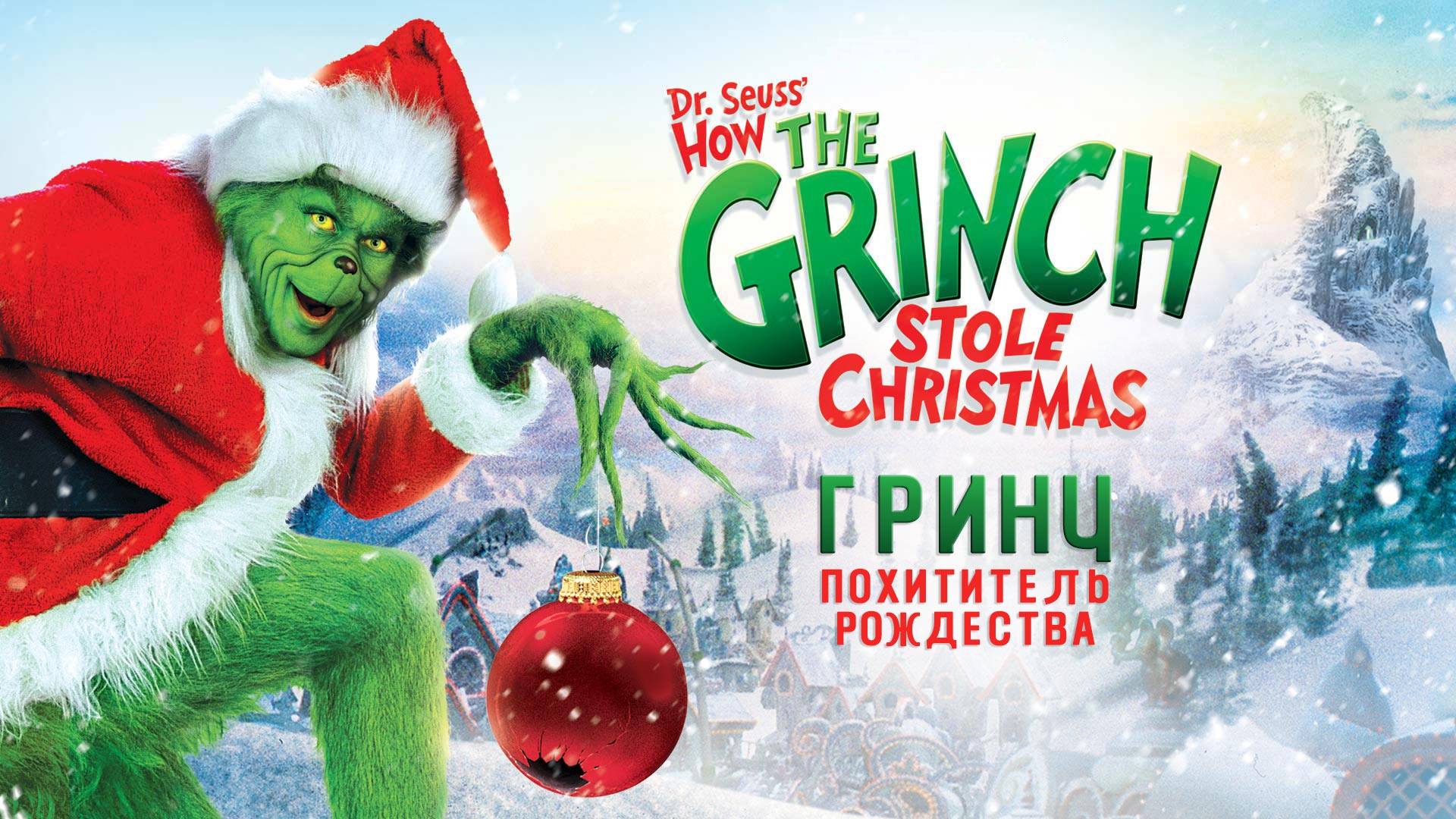 «Гринч — похититель Рождества» (2000)Лента Рона Ховарда, основанная на одноименной книге знаменитого детского писателя Доктора Сьюза, рассказывает об одном из жителей выдуманного города Ктограда — зеленом и волосатом существе по имени Гринч. В отличие от других горожан, которые обожают Рождество и празднуют его с настоящим размахом, он ненавидит праздник. Это время года напоминает ему об одиночестве и том, как ктоградцы не принимают не похожего на них монстра и считают его изгоем. Однажды, устав смотреть на счастье горожан, он решает испортить всем Рождество — украсть подарки и снять украшения с домов. Роль Гринча в фильме исполнил Джим Керри. Лента получила «Оскар» за лучший грим в 2001 году. А 2018 году студия Illumination выпустила мультфильм-ремейк истории. |