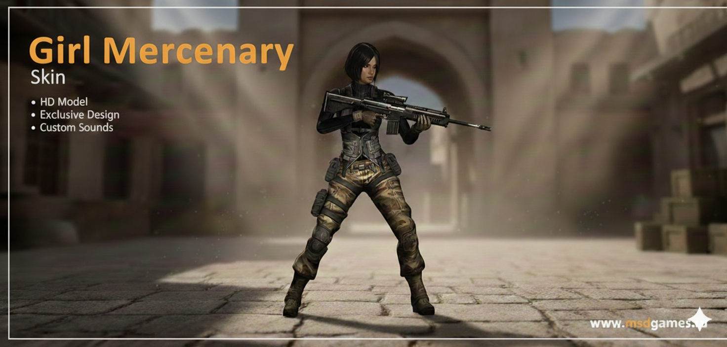 Наёмница - без компромиссов. Этот скин превращает тебя в опасную красавицу, которая одинаково легко владеет оружием и искусством устрашения. Быстрая, хладнокровная и смертоносная — не даёт врагам ни единого шанса. Её девиз прост: сначала очередь из автомата, потом разговоры